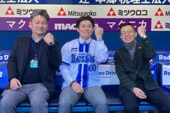 从左至右:执行副总裁岩船雄司(Yuji Iwafune)、横滨 DeNA 海湾明星队执行副总裁林拓马(Takuma Hayashi)、中山一成(Kazunari Nakayama)。