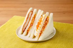 这款三明治的灵感来源于名古屋名食 "安烤意面",厚厚的意面配上香辣酱汁,再加上猪排鸡蛋三明治,是一款易食又丰盛的三明治。