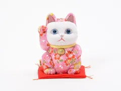 这只可爱的招财猫采用了 Kimekome 人偶特有的柔软圆润的造型。每个人偶都身着传统的 "Yuzen "布料,表情各异,绚丽多彩。推荐作为礼物和吉祥物。