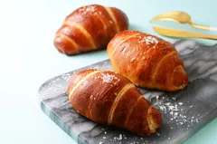 使用北海道小麦 Minori Chikara 和 Harukirari 制作的椒盐面包,具有其他咸面包所没有的粘性口感。