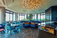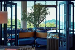 THE VERANDA 神户旨在打造一个经典、奢华的空间,将古老的西式房屋与现代咖啡馆的形象相结合,下方是波光粼粼的大海、郁郁葱葱的绿地和神户港的城市景观。