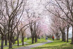 黄金周前后是二世谷地区樱花盛开的季节。与大陆上的赏樱不同,四亭山的樱花规模更大、更静谧。这是远离人群,在户外体验春天的最佳方式。