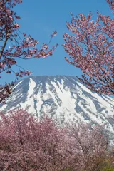 当山谷中樱花盛开时,四亭山顶上仍有积雪。白色的山峰与被称为 "虾夷富士 "的四天王山匀称的轮廓形成鲜明对比,是新雪谷春季最具代表性的景观之一。
